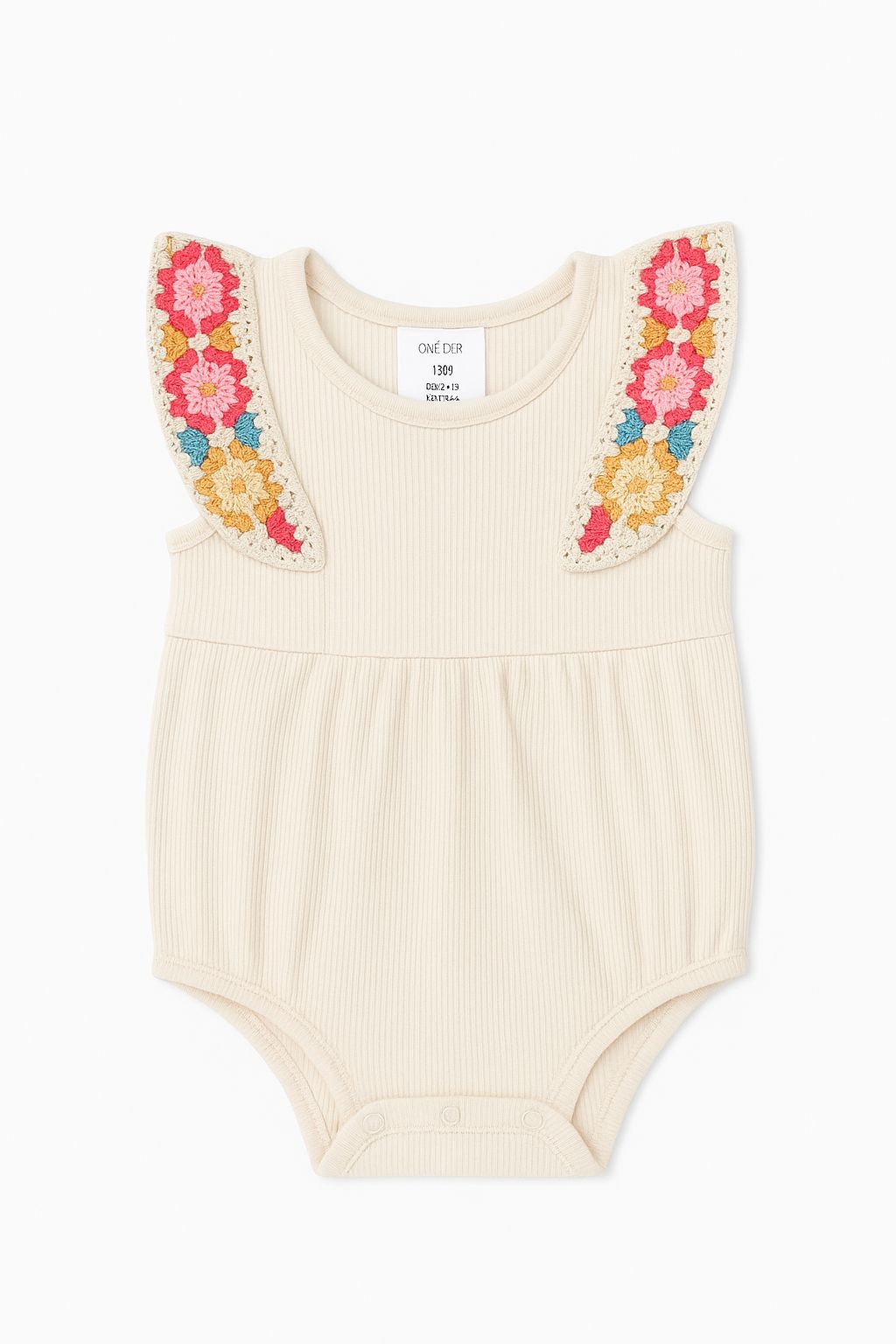 Body Infantil Menina Okie Dokie Bege Com Alça Renda