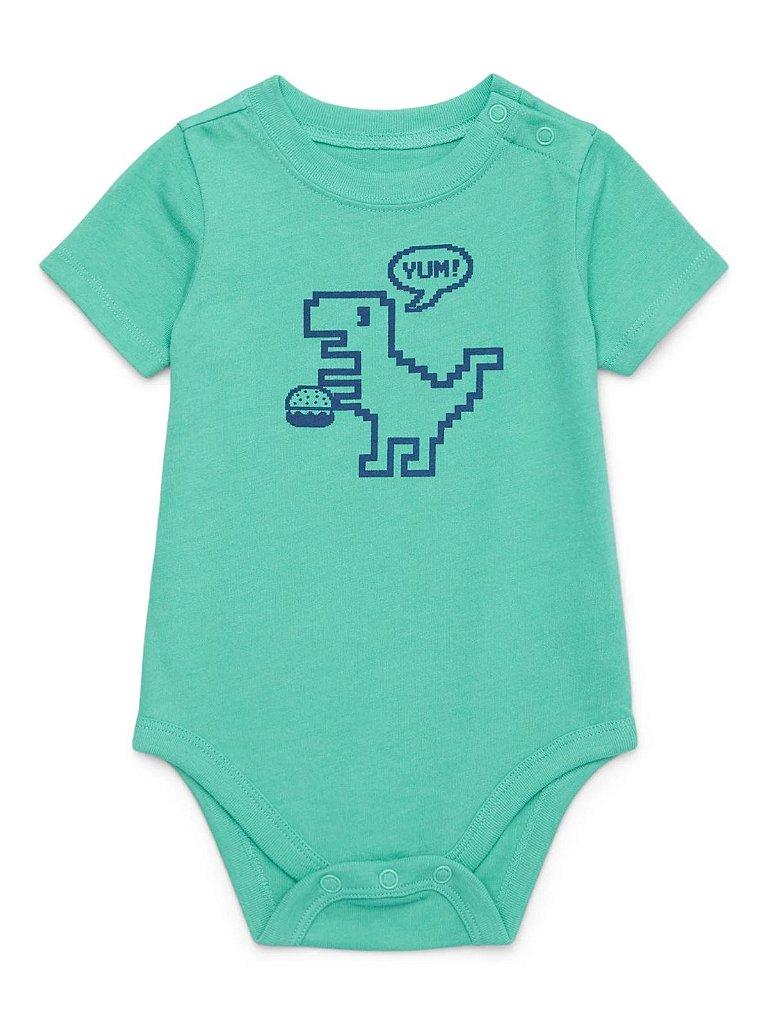 O body apresenta uma cor verde vibrante e uma estampa de dinossauro que adiciona um toque aventureiro e cheio de energia. Confeccionado em um material macio e respirável (como algodão ou mistura, verifique seu produto exato), ele permite total ventilação e liberdade de movimento, ideal para todas as brincadeiras e momentos de descanso.