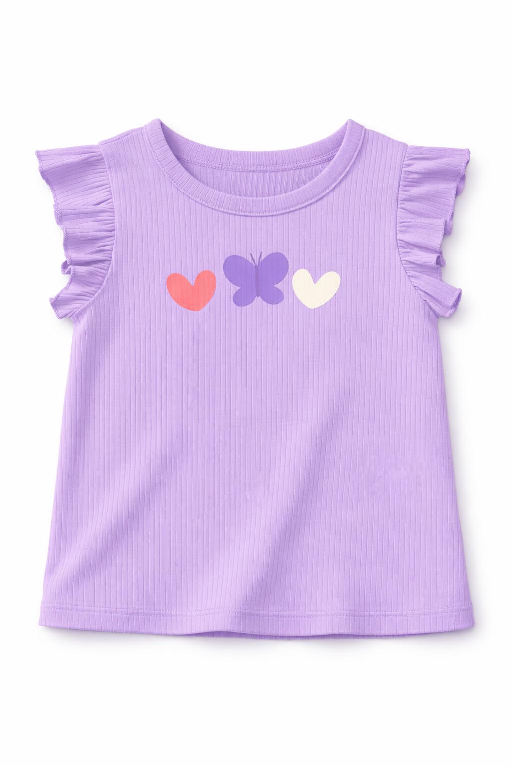 Camiseta Infantil Menina Pekkle Lilás Borboleta Coração