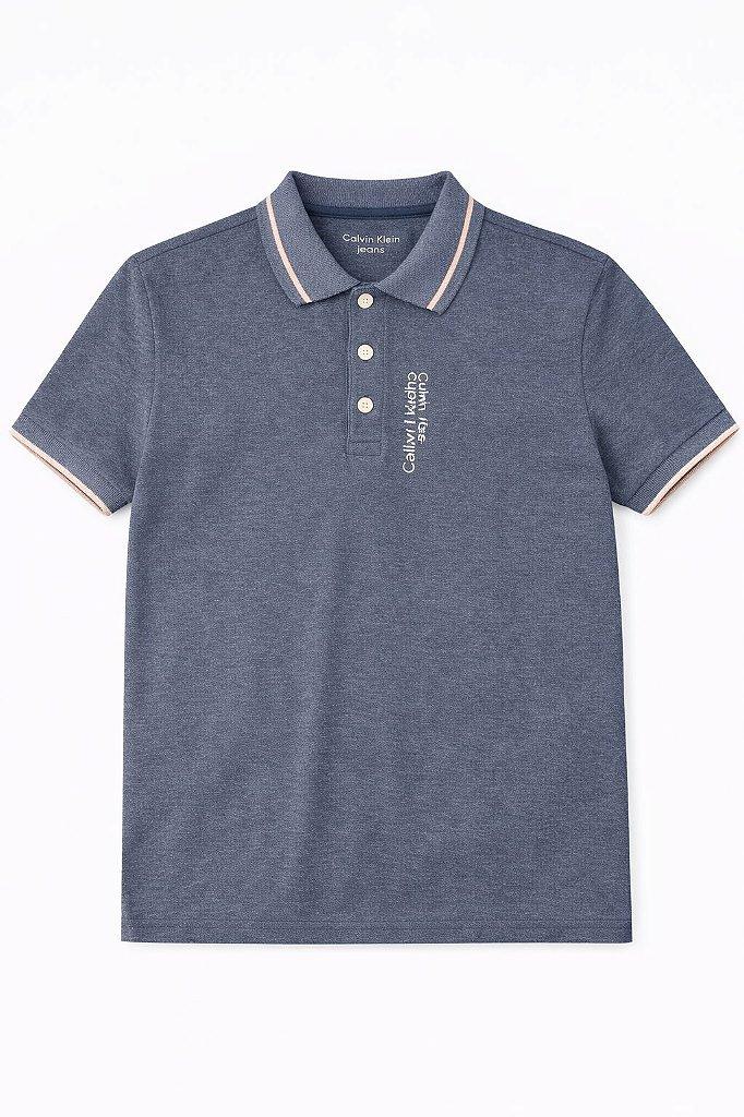 01 Camiseta Polo Infantil Menino Calvin Klein Azul com Detalhe Bege