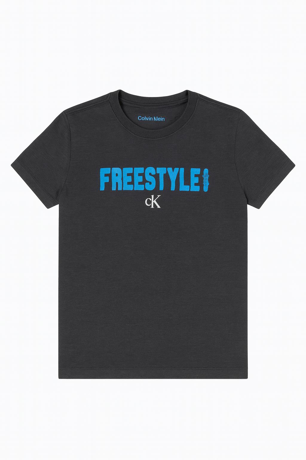 Camiseta Infantil Menino Calvin Klein Manga Curta Preta Freestyle