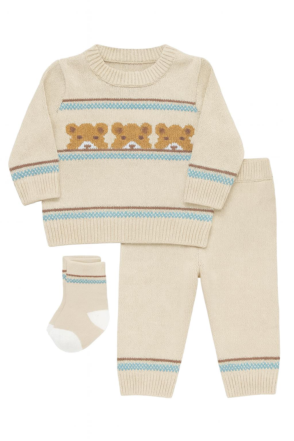 Conjunto Infantil Menino Little Lad 2 Peças Tricot Bege Urso