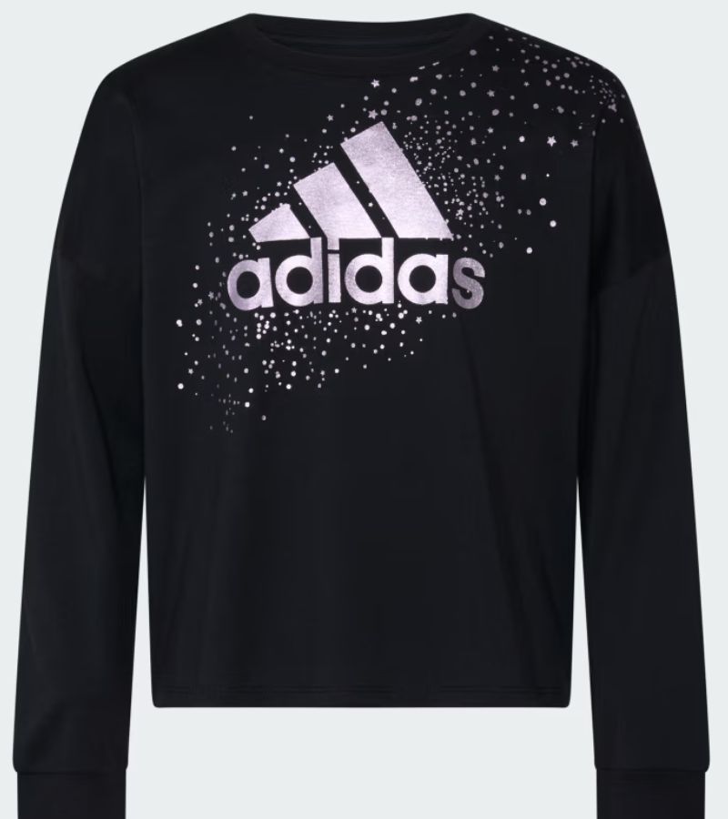 Camiseta Manga Longa Menina - Adidas Preta Detalhe Lilás