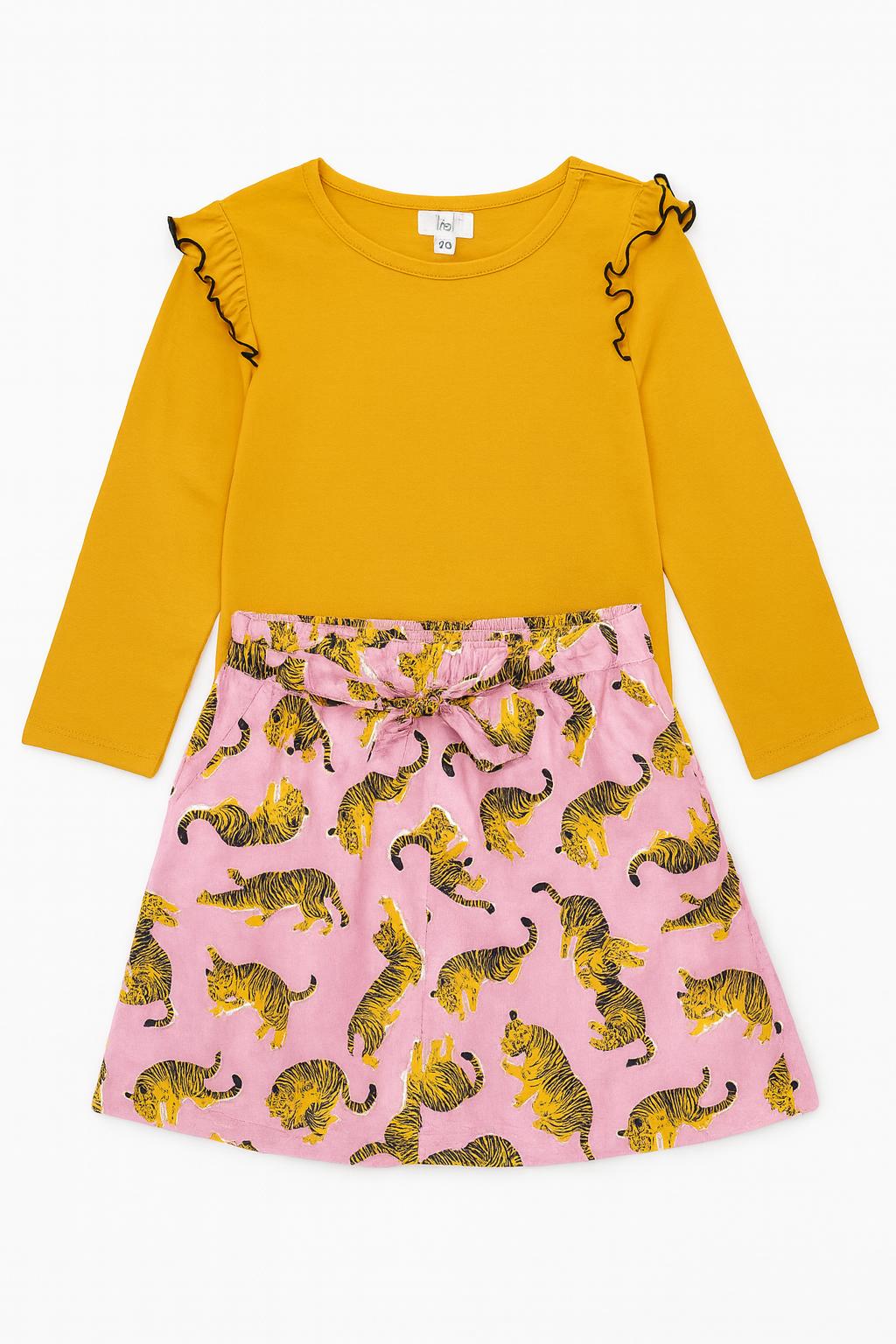 Conjunto 2 Peças Menina Crown e Ivy Camiseta Amarela Saia Tigre