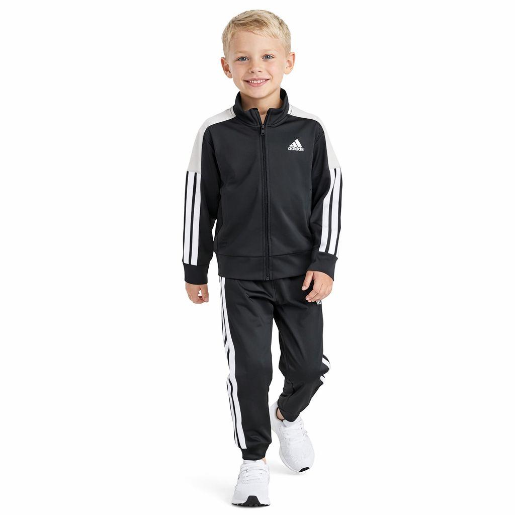 Para as mamães que buscam um visual moderno, urbano e extremamente funcional, o Conjunto Adidas Preto com Bege é a escolha mestre. Esta combinação de cores neutras é tendência absoluta no streetwear infantil, garantindo que o seu pequeno esteja elegante em qualquer ocasião, da escola aos passeios de inverno.