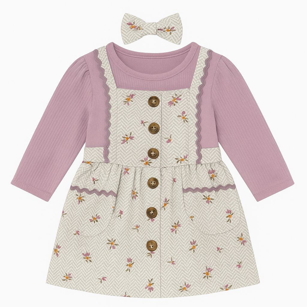 Conjunto 3 Peças Menina Nicole Miller Vestido e Body Lilás com Laço