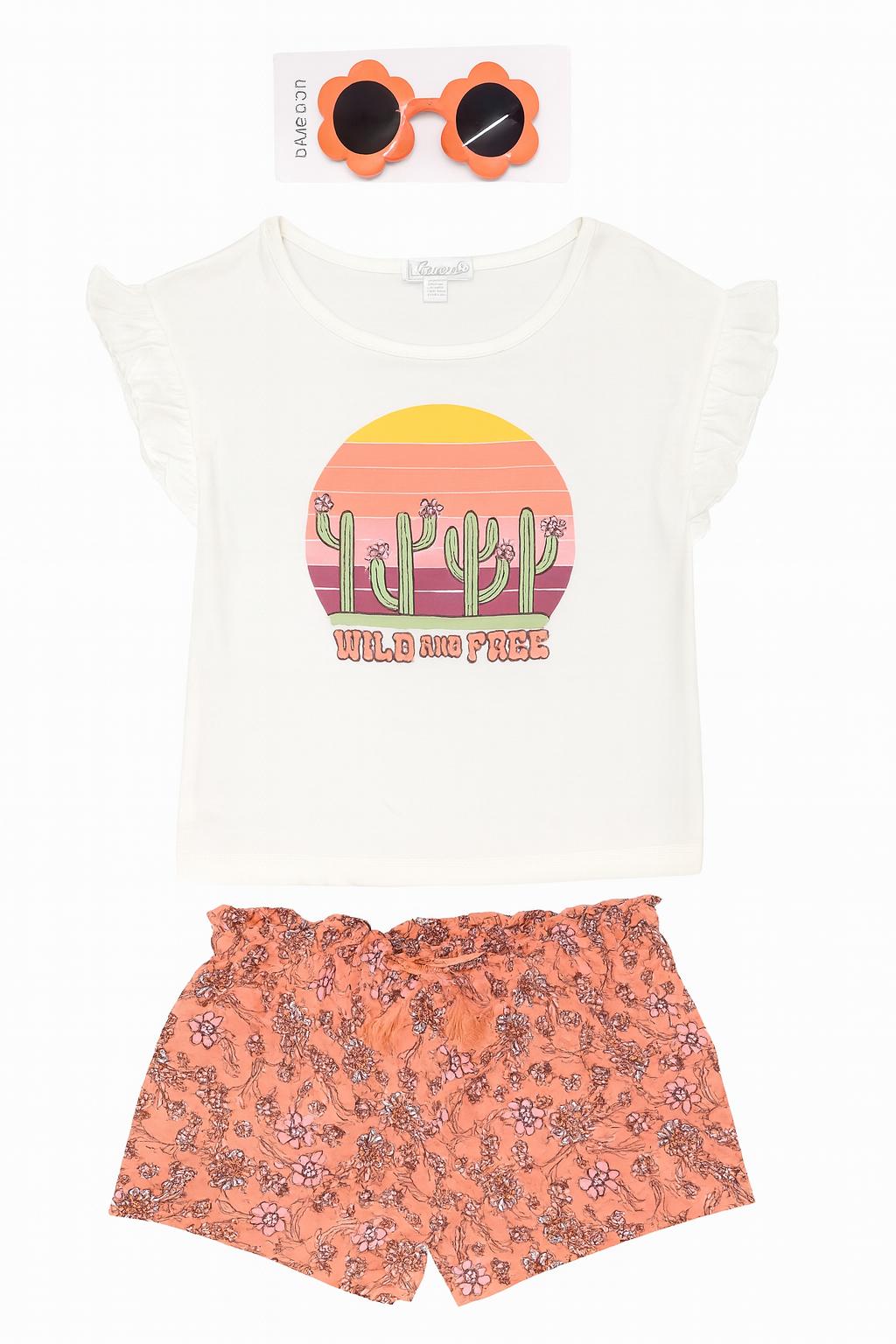 conjunto infantil between, conjunto menina camiseta shorts, conjunto cactos infantil, roupa between importada, conjunto verão infantil, conjunto estiloso menina, camiseta shorts menina, moda infantil casual, conjunto infantil original, presente menina conjunto