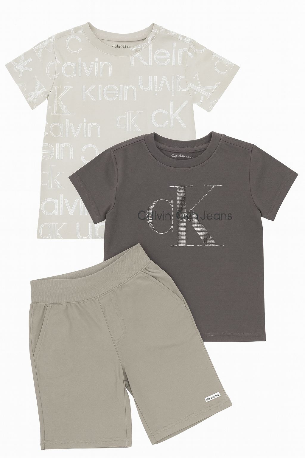 Conjunto Infantil Menino Calvin Klein 3 Peças Camiseta Bege Estampa
