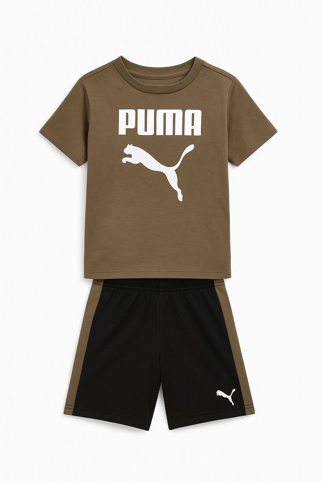 Conjunto Infantil Menino Puma Camiseta Marrom Bermuda Preta