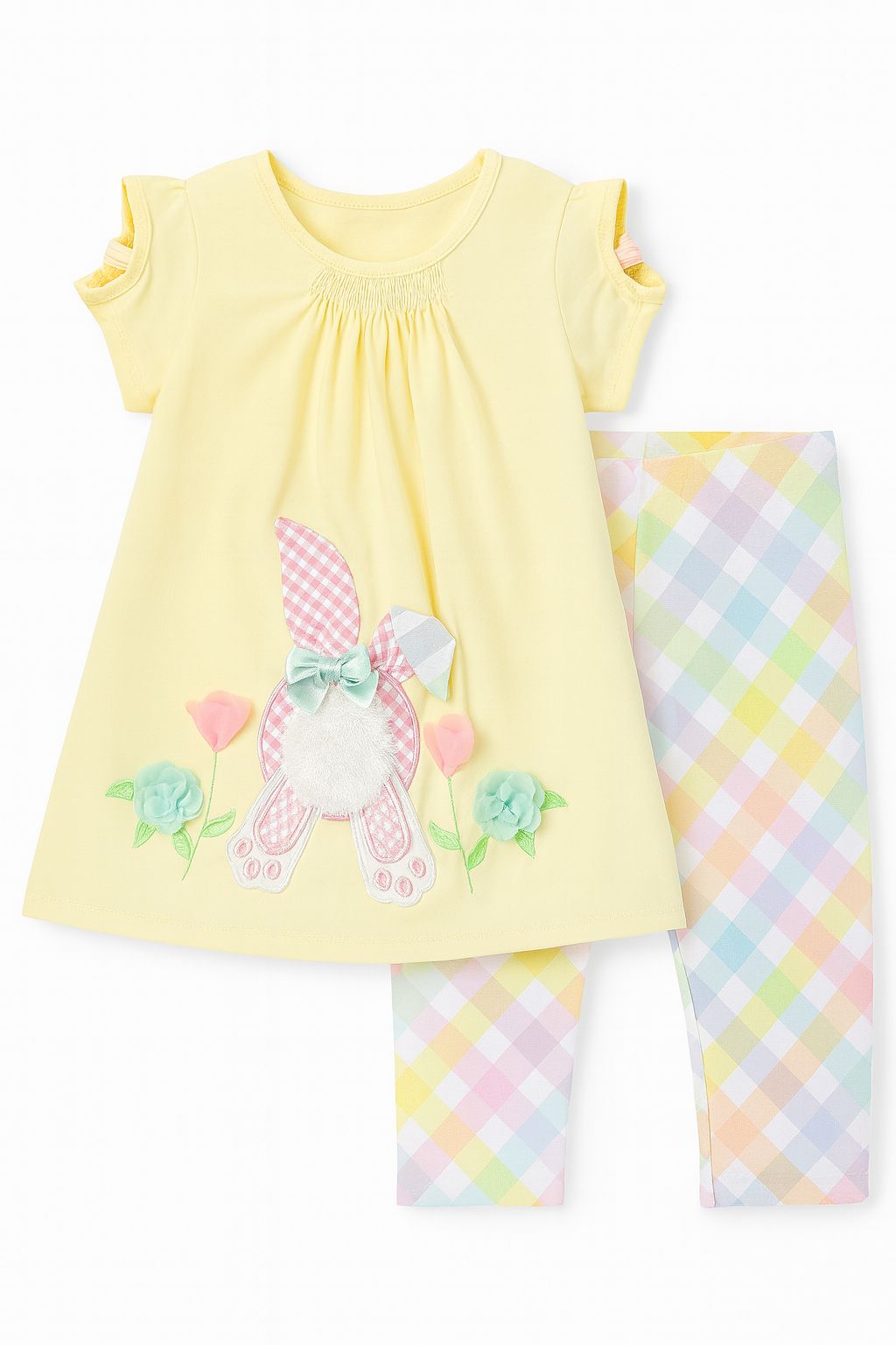 Conjunto Menina Bonnie Jean 2 Peças Bata Amarela e Legging Coelho
