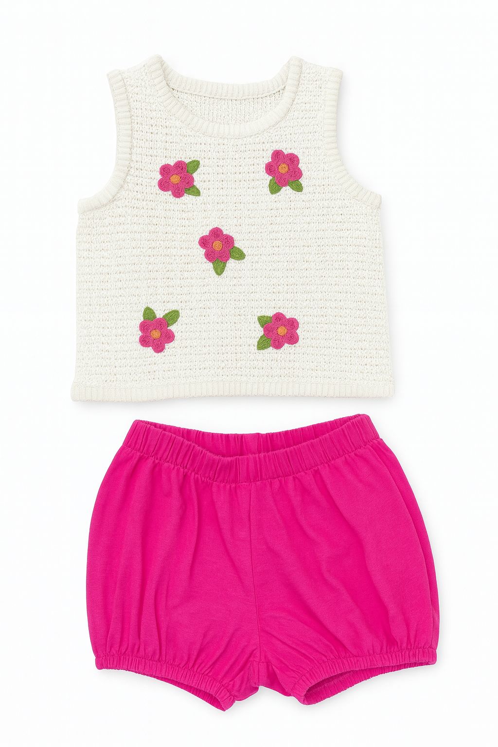 Conjunto Menina First Impressions 2 Peças Regata Crochê Flor Pink