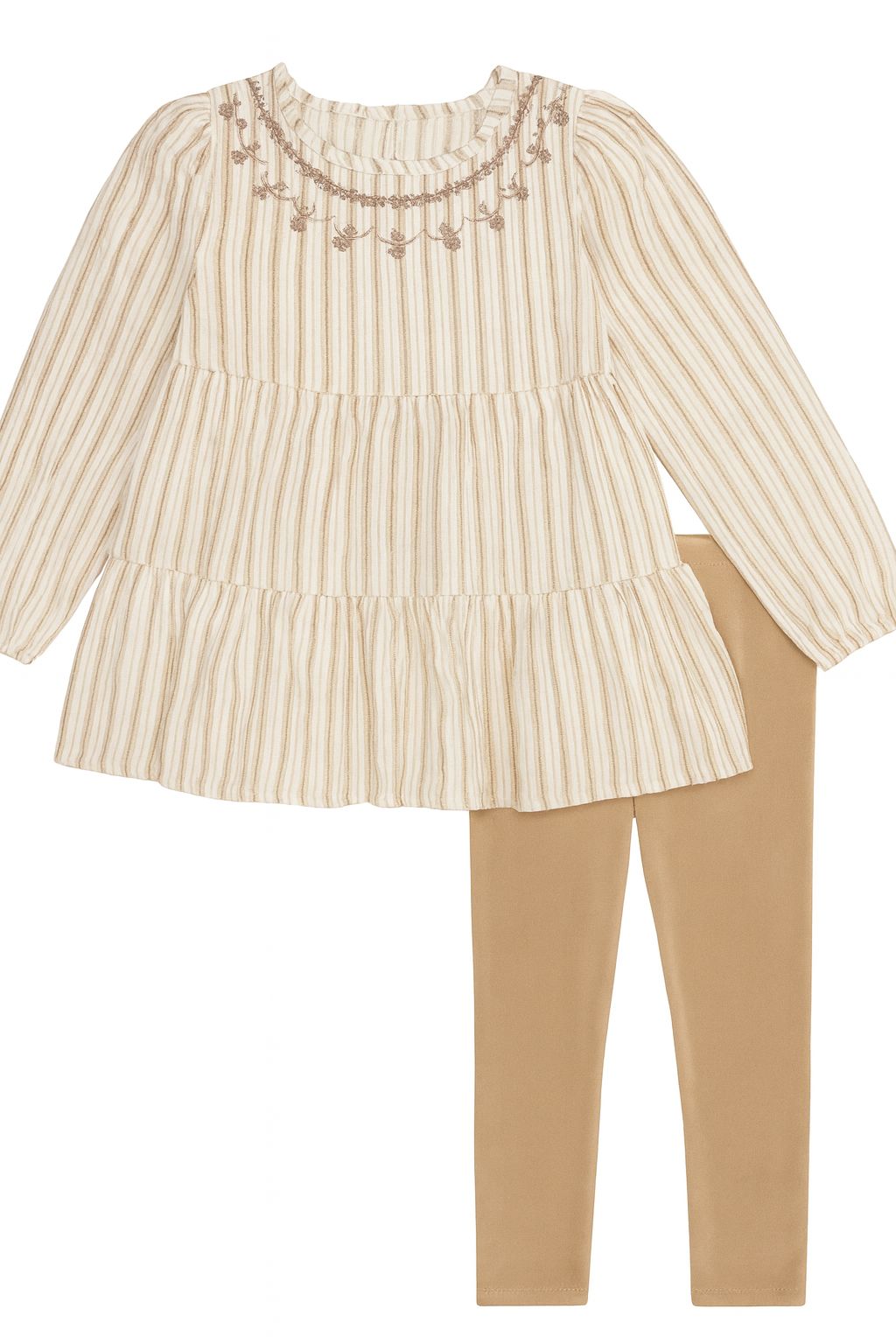 Conjunto Menina Lucky Brand Bata Listrada com Bordado e Legging