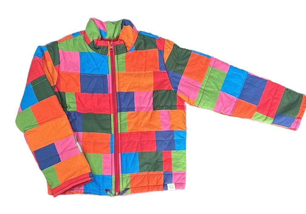 Característica DetalheOrigemNacionalMaterial ExternoPoliéster/Tactel (verificar etiqueta exata)Material Interno100% AlgodãoCor PrincipalColorida (especificar cores, ex: Azul/Rosa/Amarelo)ModeloJaqueta Forrada Meia-EstaçãoFechamentoZíper frontal