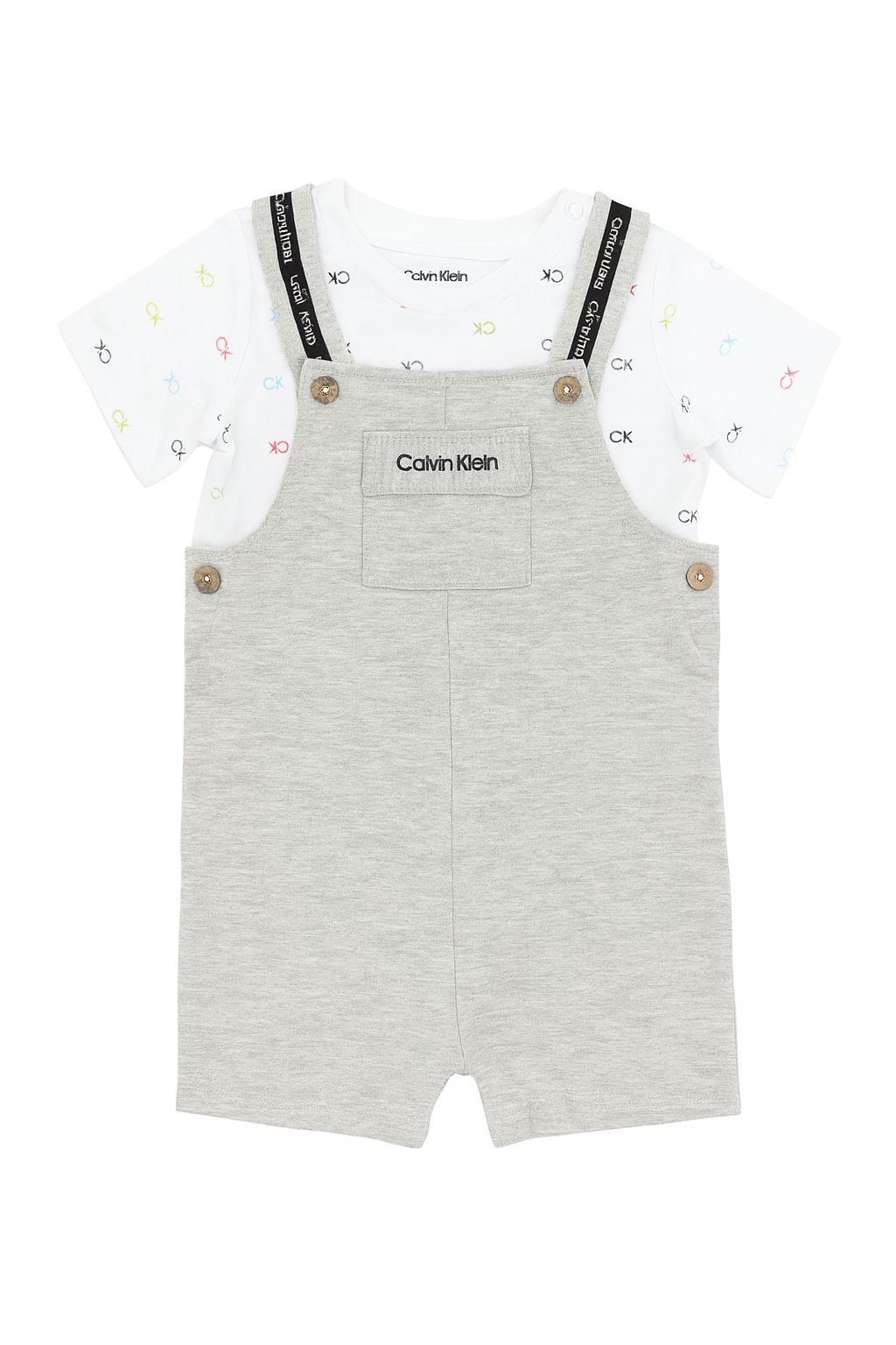 Jardineira Menino Calvin 2 Peças Cinza Algodão Com Camiseta