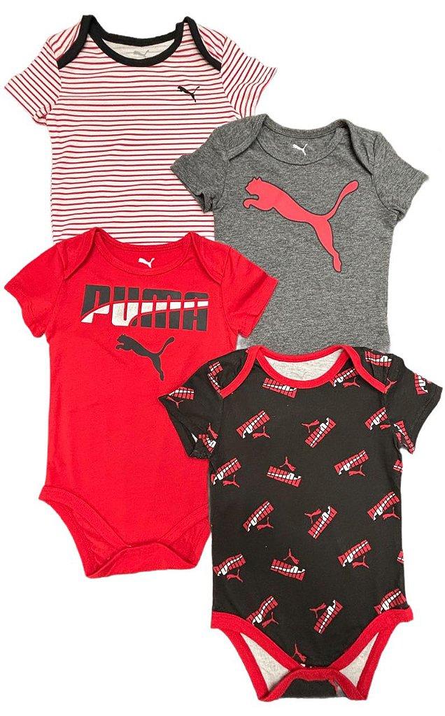 O Kit com 4 Bodies Puma Manga Curta é perfeito para bebês cheios de atitude desde os primeiros meses. Com visual esportivo e moderno nas cores preto e vermelho, essas peças unem conforto, qualidade e muito estilo.