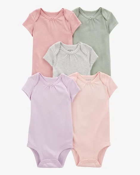 O Kit 5 Bodys Manga Curta Cores Neutras Detalhe Laço Carter’s é a escolha perfeita para unir praticidade, delicadeza e conforto no enxoval da sua bebê. Produzidos em 100% algodão macio e respirável, garantem suavidade para a pele sensível do bebê e liberdade total de movimentos.