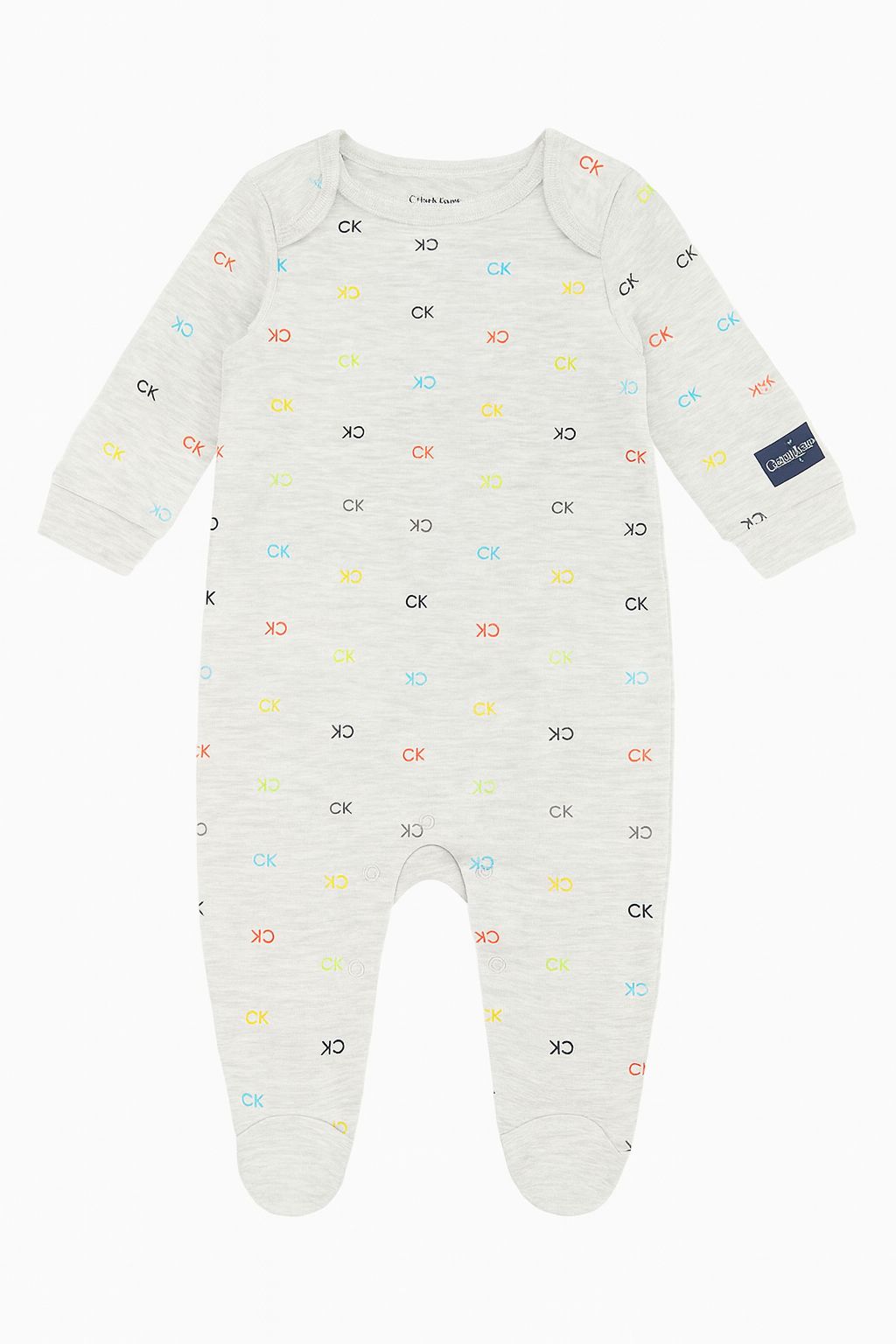 Macacão Calvin Klein Infantil Cinza em Algodão Logo Colorida