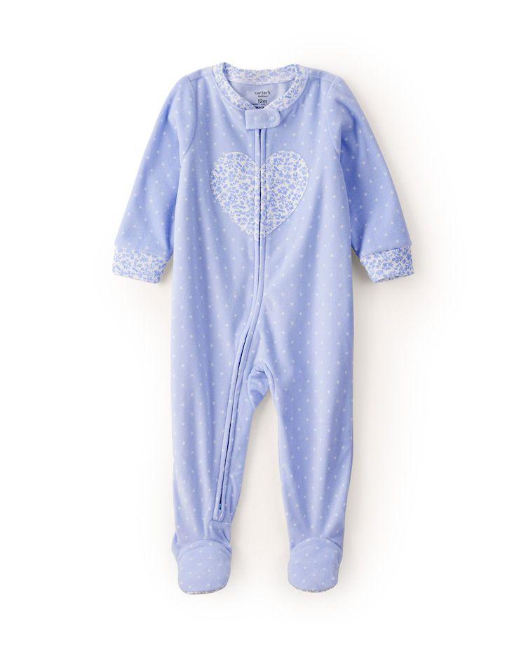 Se existe uma peça que traz paz de espírito para as mães em noites frias, é o Macacão Carter's Fleece Azul Coração. Sabe aquele medo do bebê tirar a coberta e ficar geladinho de madrugada? Com este macacão, esse problema acaba! Ele funciona como um "saquinho de dormir" com pernas, mantendo a temperatura corporal estável a noite toda.