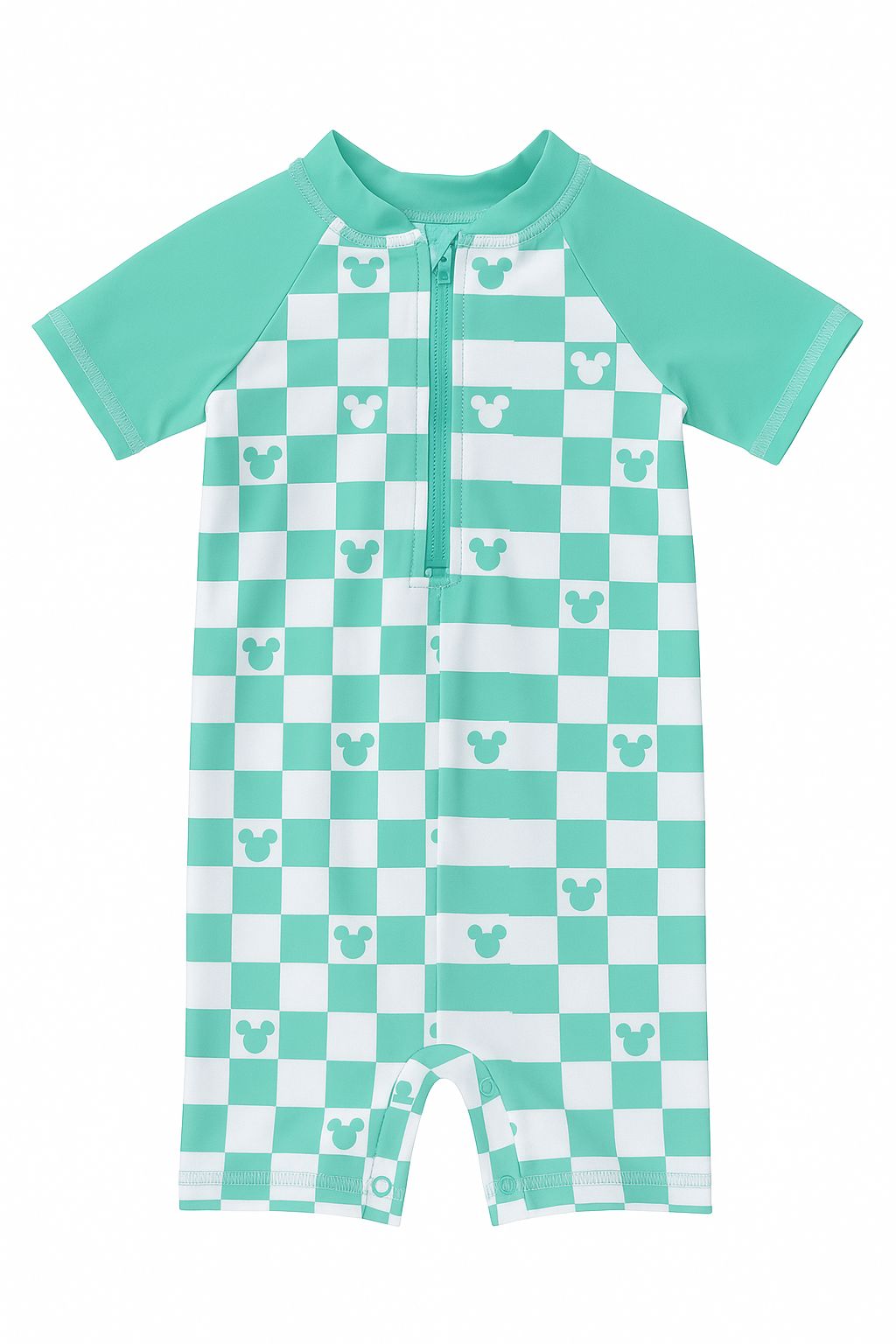 Macacão Infantil Disney Menino - Praia - Verde Xadrez Mickey - Proteção Solar