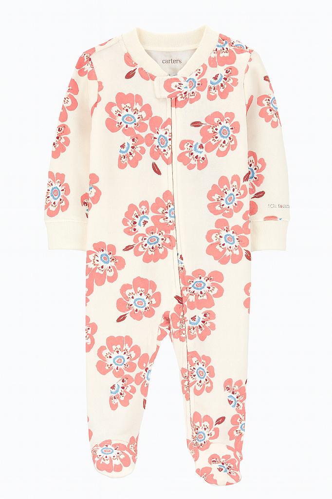 Com estampa charmosa de flores bordô, o design clássico transmite suavidade e estilo, perfeito para compor o enxoval ou para presentear. O modelo conta com zíper frontal prático, que facilita vestir e trocar, além de pezinho fechado para manter a bebê aquecida e protegida.
