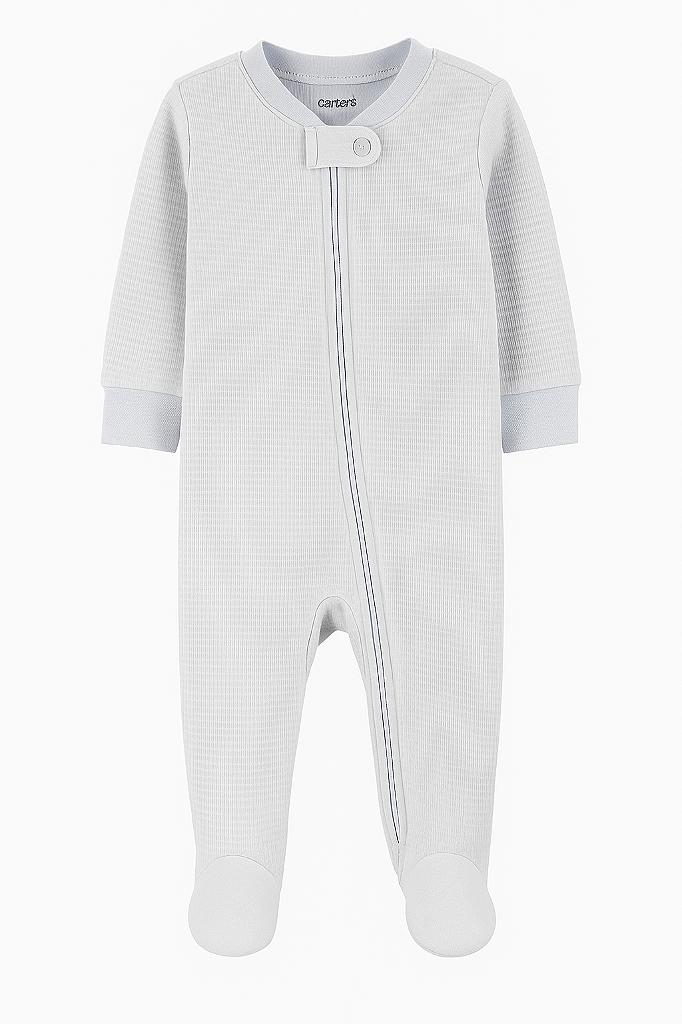 Esse macacão Carter?s de algodão listrado azul é perfeito para compor o enxoval ou presentear com muito charme e qualidade.