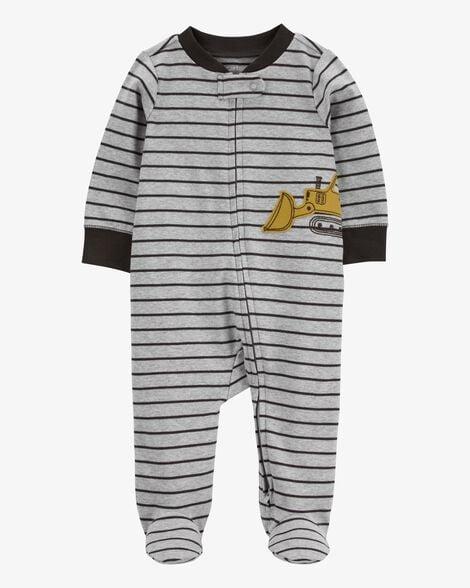MACACÃO CARTER'S BEBÊ ALGODÃO CINZA ESCAVADEIRA: CONFORTO E DIVERSÃO NA HORA DE DORMIR