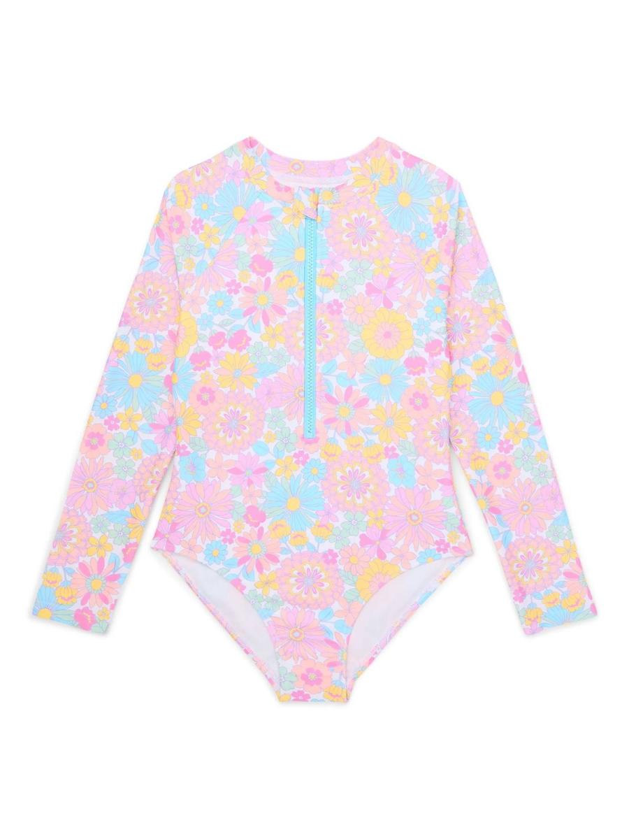 Com uma estampa de flores delicadas sobre um fundo azul encantador, este maiô oferece um visual romântico e solar. O tecido tecnológico possui alta elasticidade e secagem ultra rápida, evitando que a criança fique úmida por muito tempo após sair da água. O zíper conta com uma aba de proteção interna, garantindo que o metal não encoste nem belisque a pele sensível da sua filha.