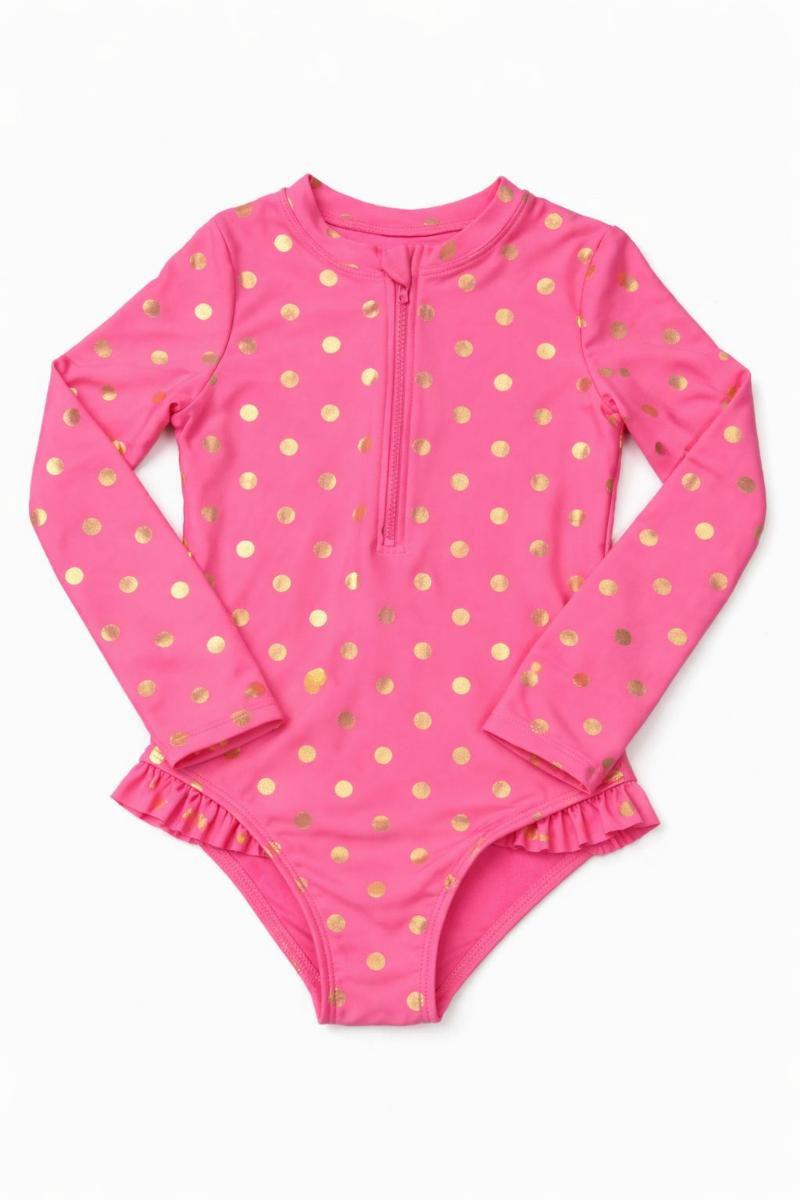 Diferente de maiôs que perdem a cor ou relaxam após o primeiro uso, este modelo é importado diretamente dos EUA, seguindo o padrão de durabilidade da Wonder Nation. O tecido possui proteção contra o desbotamento causado pelo cloro e pelo sal, mantendo o pink vivo e as bolinhas brancas impecáveis por muito mais tempo. O forro interno é macio e de secagem rápida, evitando assaduras e desconfortos após o banho.