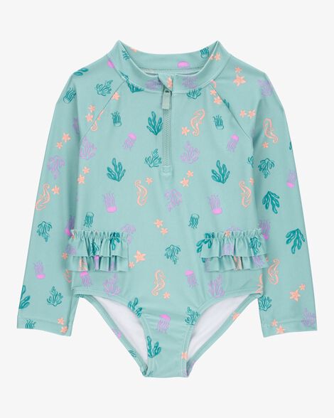 maiô infantil menina, maiô carter’s infantil, maiô manga longa infantil, maiô verde conchas, maiô proteção solar menina, roupa de praia carter’s, maiô importado infantil, moda praia infantil importada, maiô confortável menina, presente infantil carter’s