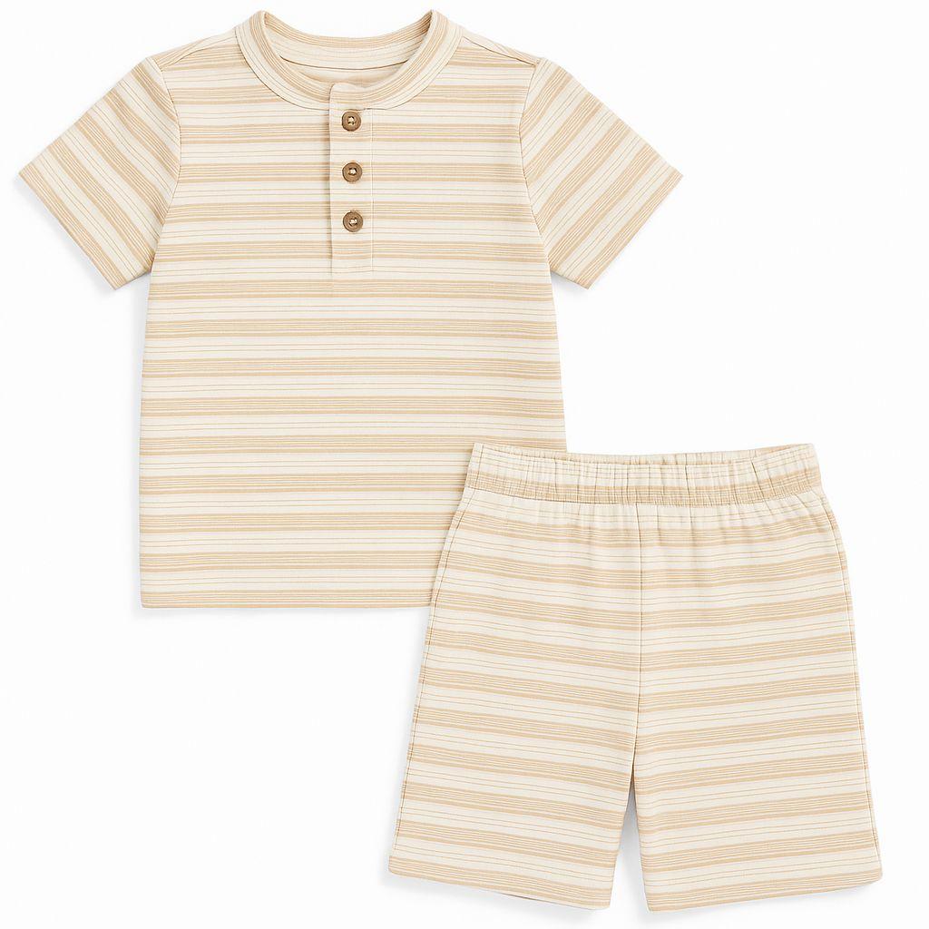 PIJAMA INFANTIL MENINO 2 PEÇAS LIAM E JAMES LISTRADO BEGE
