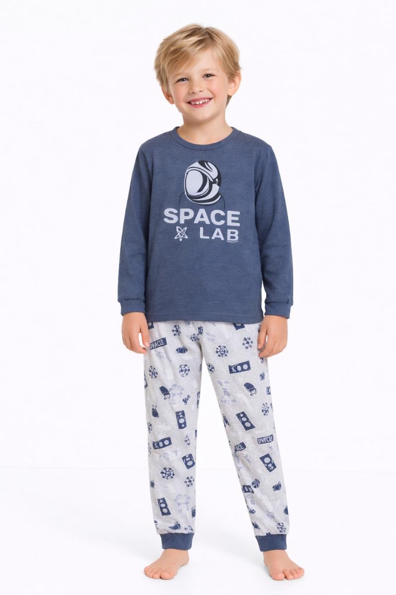 O Pijama Infantil Dadomile Space Lab é perfeito para meninos apaixonados por espaço, astronautas e descobertas. A blusa azul manga longa traz estampa frontal moderna com astronauta e a frase ?Space Lab?, deixando o look estiloso e divertido.