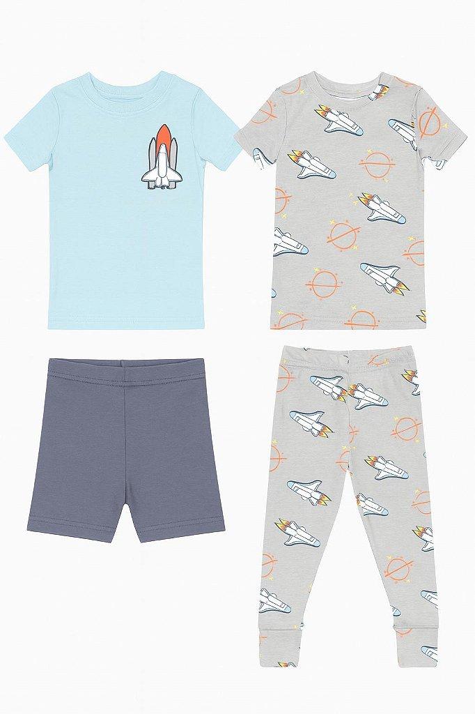 Importado dos EUA, o kit é composto por 2 camisetas e 2 calças coordenadas que permitem o sistema Mix & Match: você pode misturar as estampas de foguetes, estrelas e naves espaciais, criando quatro combinações diferentes. É a praticidade que o enxoval precisa com a durabilidade que só a Kirkland (linha premium da Costco) oferece.