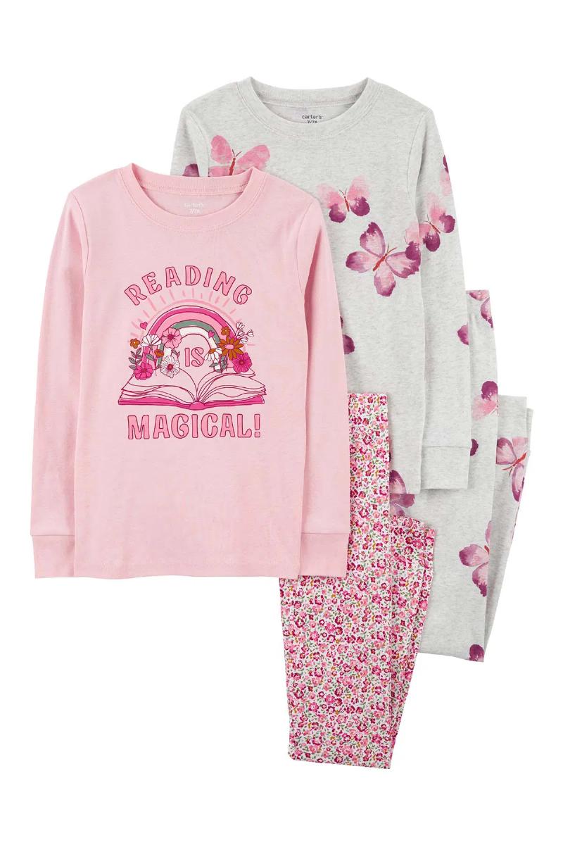 Para as mamães que valorizam o momento da história antes de dormir, o Pijama Carter's "Reading is Magical" é o convite perfeito para uma noite de descanso tranquila e cheia de charme. Este conjunto de 4 peças traz a delicadeza do rosa em harmonia com estampas lúdicas que celebram a magia da leitura.
