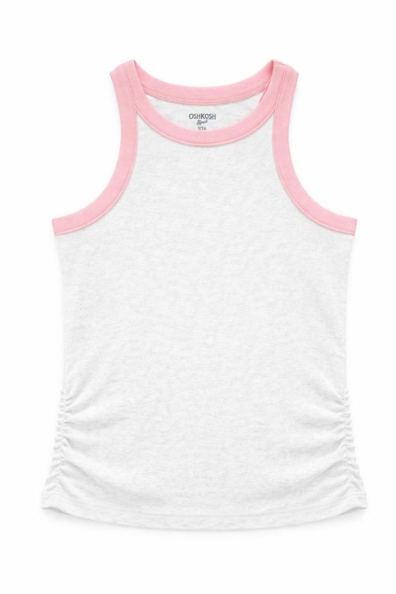Para os dias de calor em que sua filha precisa de liberdade para brincar, a Regata OshKosh Cinza com Barra Rosa é a peça chave. Com um design clean e moderno, ela foge do óbvio ao misturar o cinza mescla com um detalhe vibrante em rosa na barra, criando um visual "sporty chic" que combina com tudo, do shorts jeans à legging colorida.