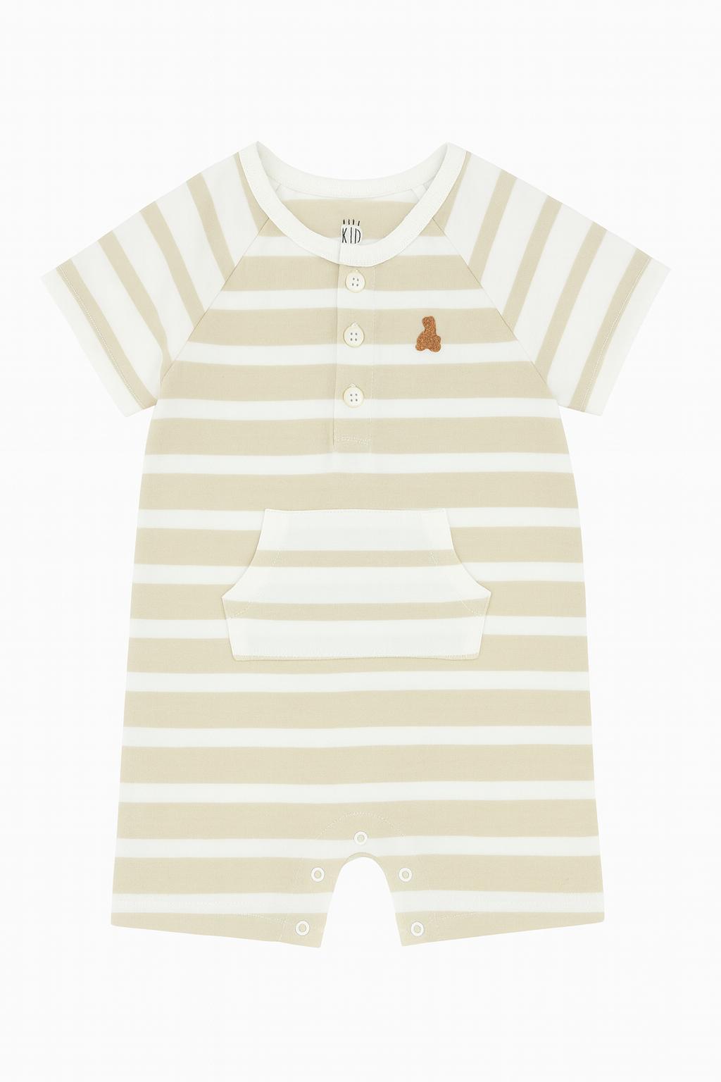 Romper Infantil Menino GAP Bege Listrado com Urso Bordado