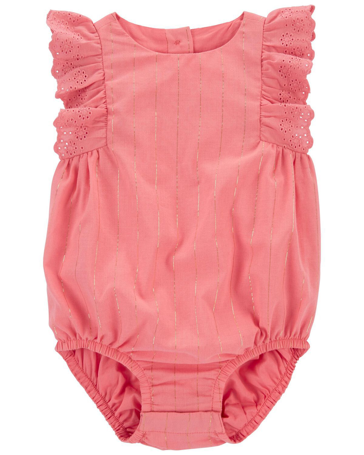 Romper Menina baby B'gosh Rosê Renda Listras Douradas