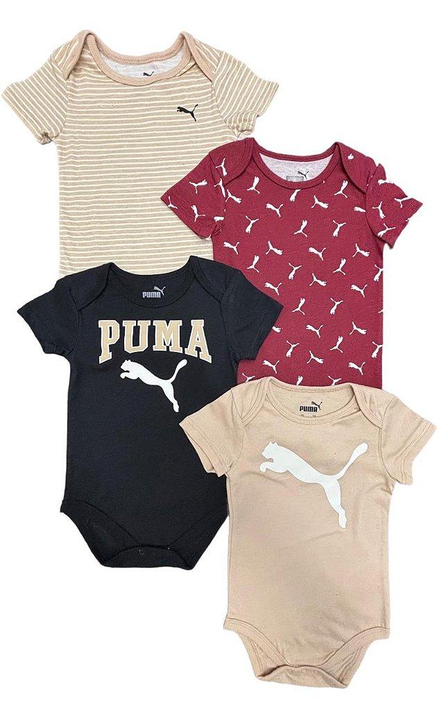 O conforto e o estilo icônico da Puma em um kit essencial de 4 bodys para o seu bebê.