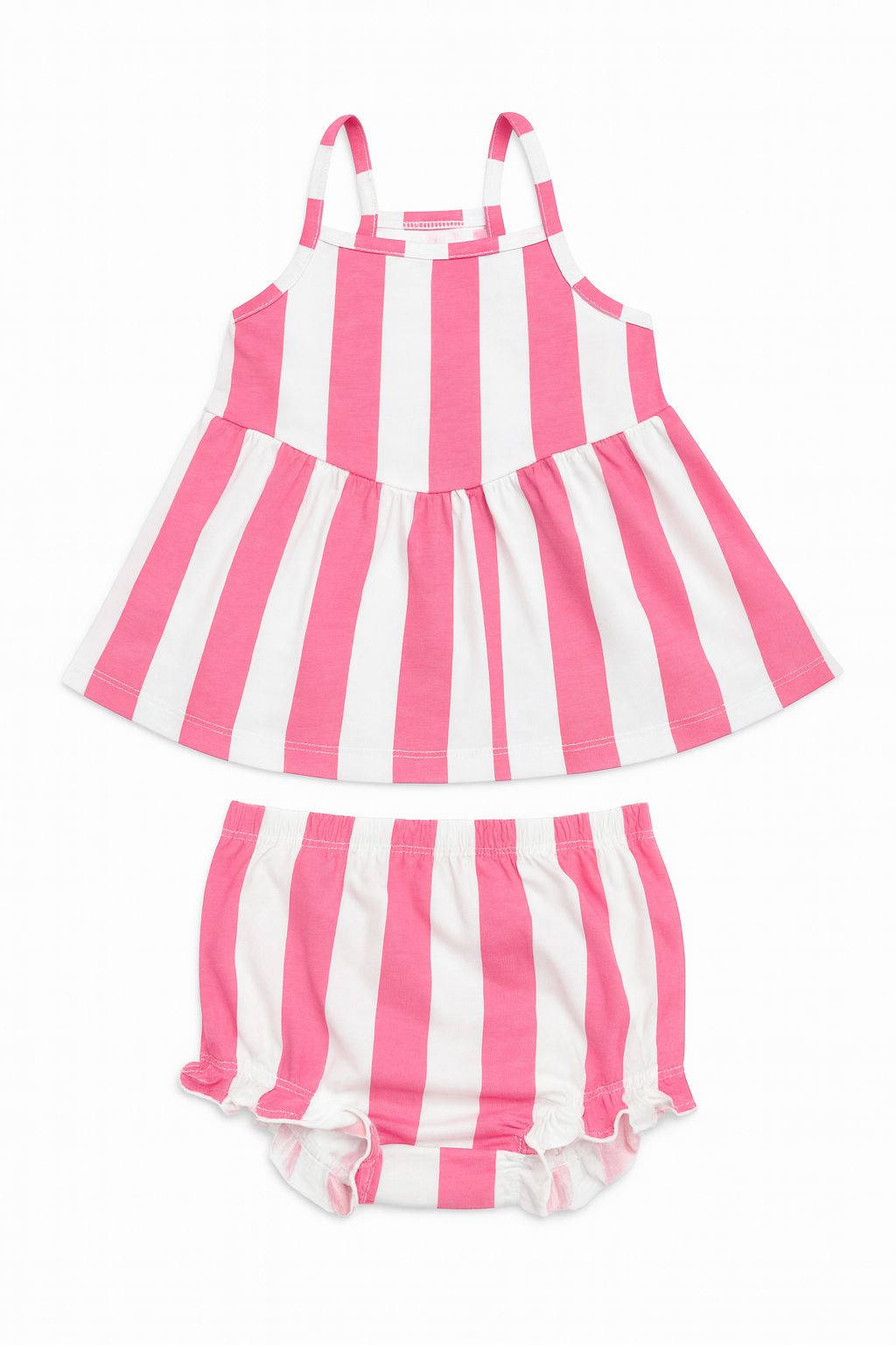 Garanta já o vestido Okie Dokie infantil menina pink e branco listrado com calcinha importado e proporcione à sua filha um look fofo, confortável e cheio de estilo! 🎀👧✨