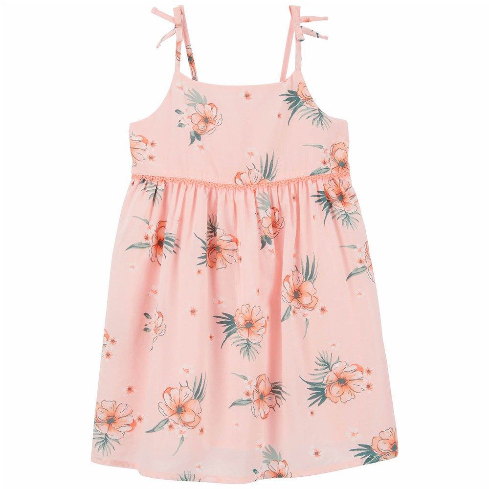 Vestido Infantil Menina Oshkosh Rosê Com Flores e Renda Neon
